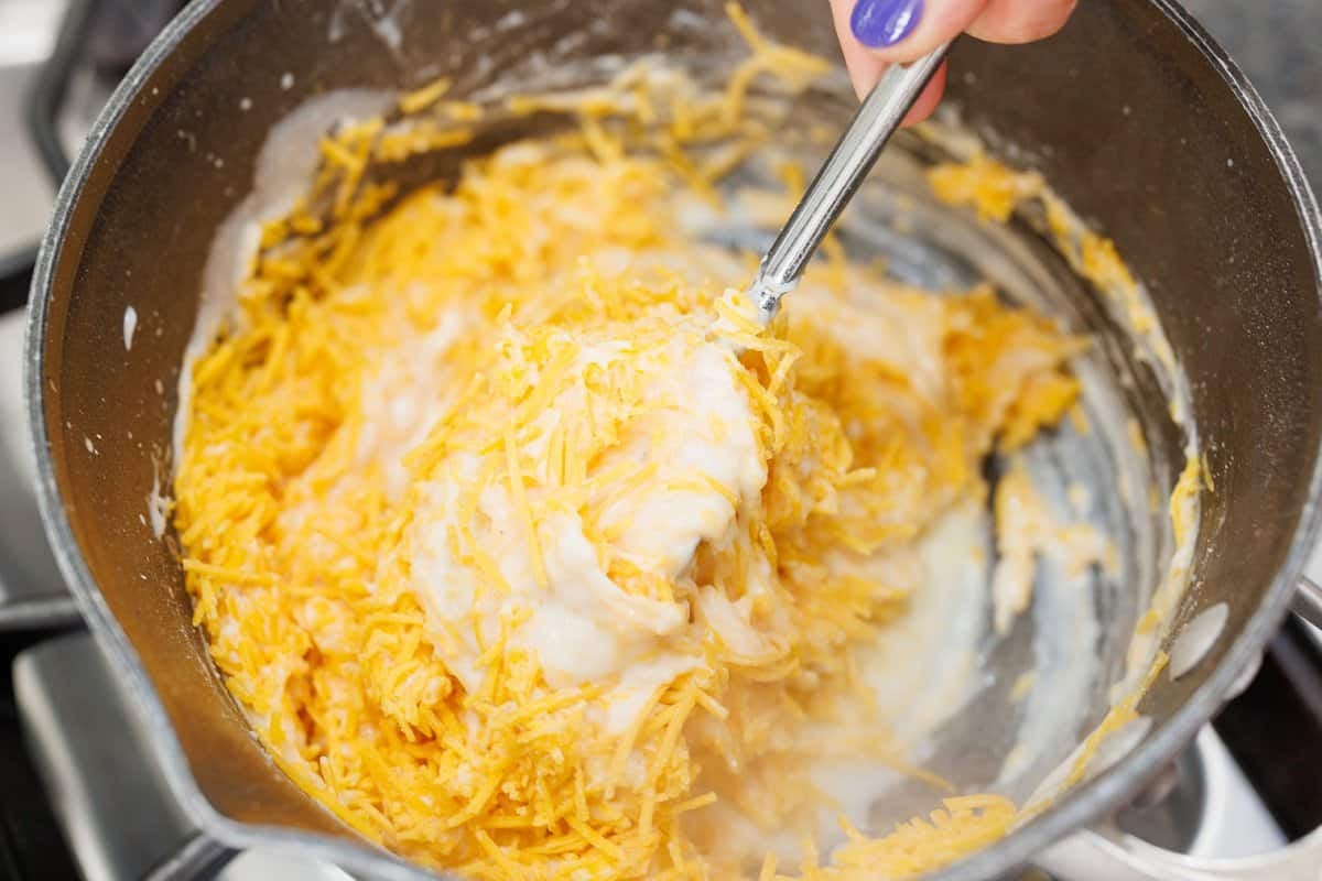 4. Add in the shredded cheese and stir until melted; remove from heat.