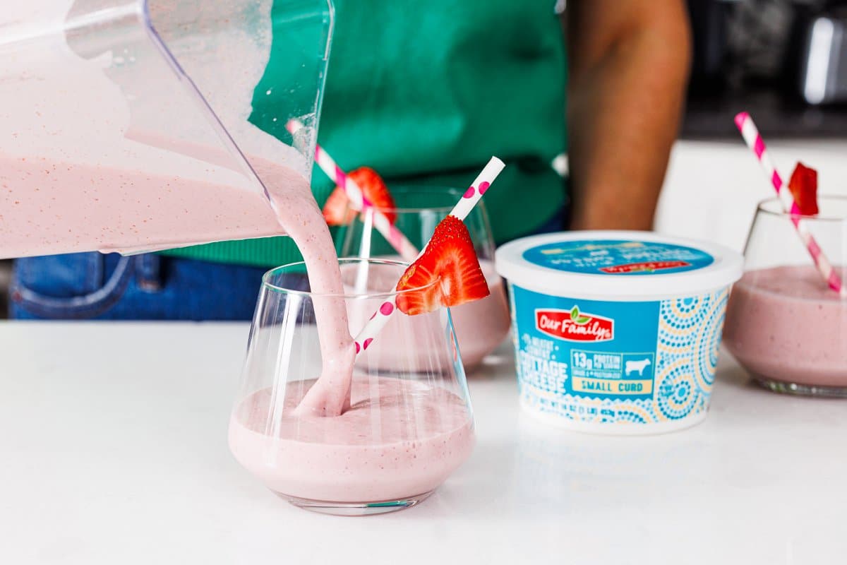 If you haven’t tried using cottage cheese in your smoothie before, I highly recommend giving it a try! It’s the perfect addition to this Strawberry Protein Smoothie.