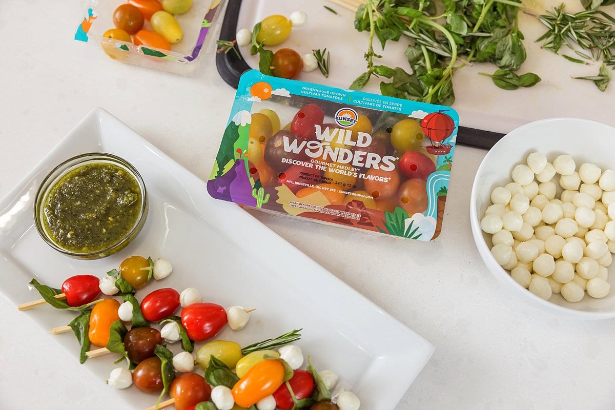 How to Make Tomato Caprese Skewers with Pesto