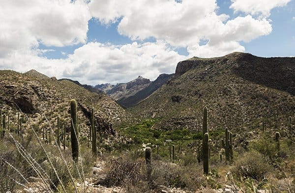If you’re traveling with kids or in a group, I highly recommend hiking Sabino Canyon. Located in the Coronado National Forest, Sabino Canyon Tours offers paved and unpaved hiking trails for all fitness levels.