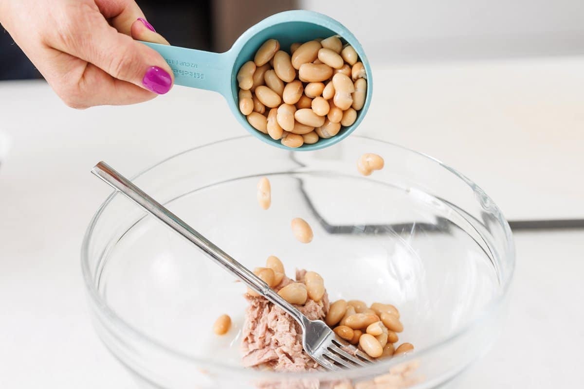 - Combine beans, tuna, onion and fresh herbs in a medium bowl.