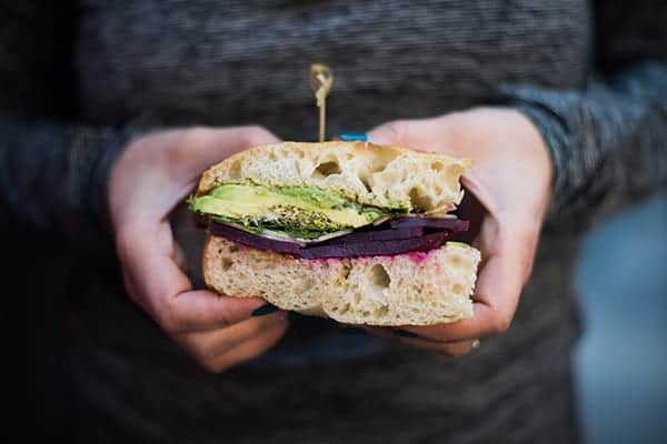 I’m not gonna lie, just looking at this photo of the vegan club sandwich is making me hungry!