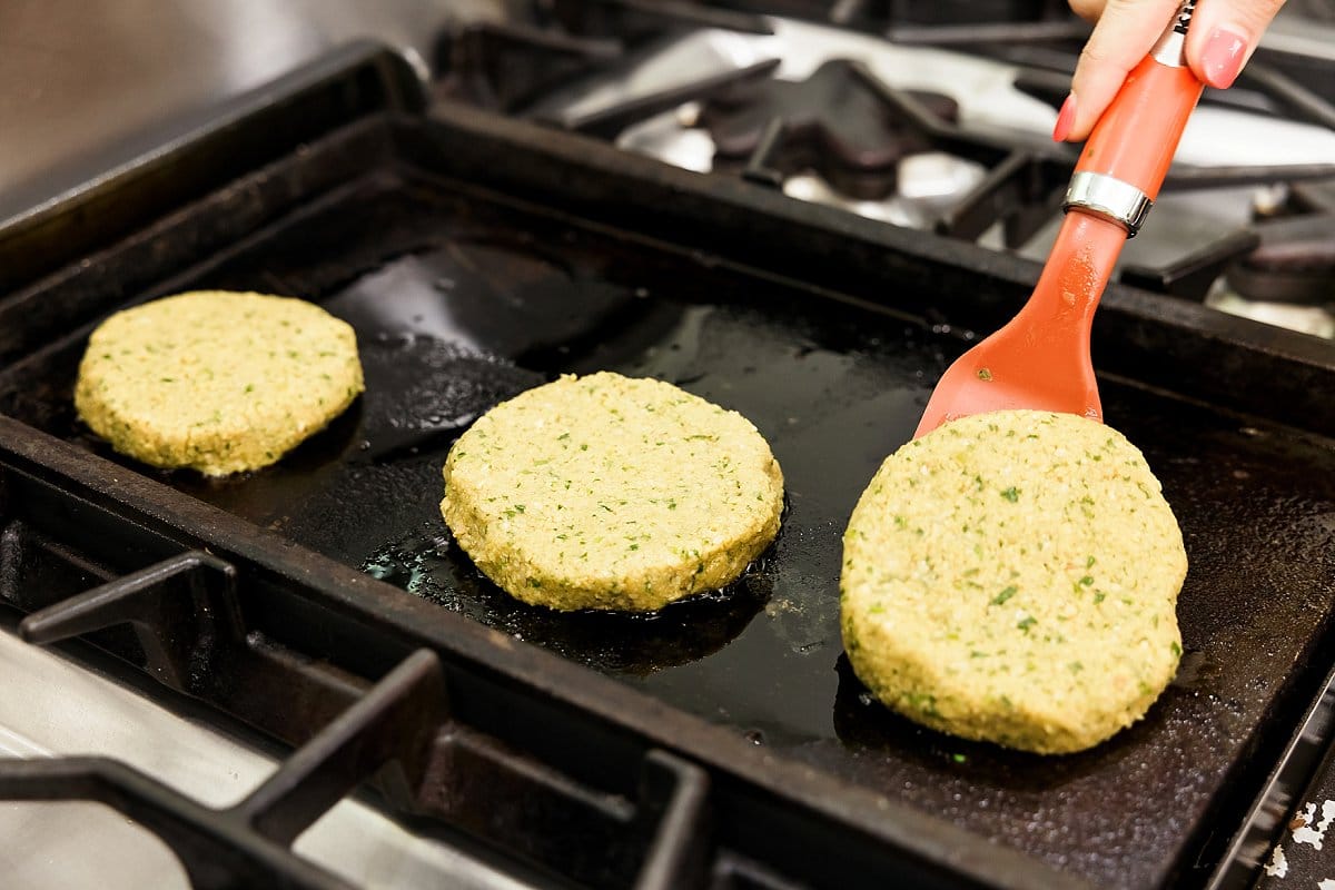 Lastly, it’s time to cook the patties. Heat a non-stick griddle or frying pan over medium-high heat and brown the patties until they are golden brown. This takes about 4-5 minutes per side.