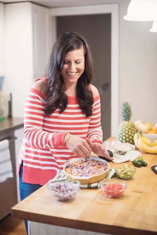 For toppings, I love to mix textures like creamy avocado with crunchy red onion but the truth is – it will taste great with whatever you have on hand! Love cilantro? Add it! Hate red onions? Skip them! Make it your own. Just promise me you’ll make this addictive baked hummus dip.