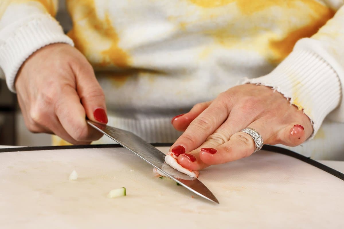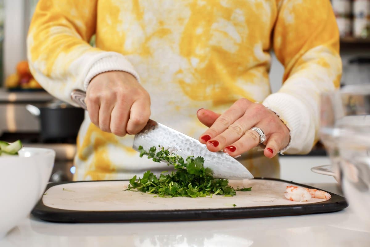 Cooked, peeled, and de-veined shrimp are easiest to use with this recipe. However, fresh or frozen varieties work as well. Just be sure they are completely thawed before use! To easily defrost frozen shrimp, fill a bowl with cold water. Then, let the shrimp rest in the water for 20-30 minutes. When thawed, place the shrimp on a plate and pat dry.