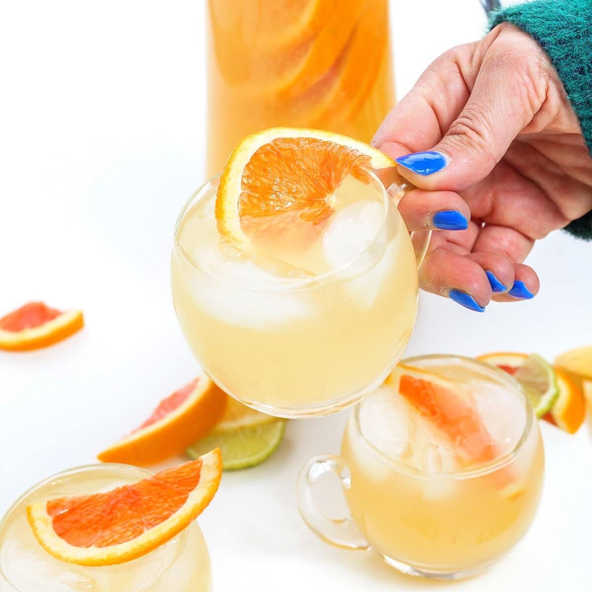 This sparkling white wine ginger beer sangria is made with three types of citrus juice. The ultimate party drink, this recipe is great for entertaining a crowd!