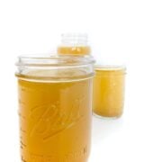 Strain the chicken broth over a mesh strainer, removing the bones and veggies. Serve in the refrigerator in an air-tight container for up to 7 days or freeze for up to 3 months.