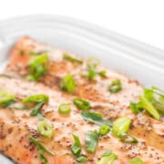 Roast salmon 15-20 minutes or until fish flakes easily with a fork. Garnish with fresh parsley and lemon wedges to serve.