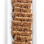 Bars must be cooled completely before slicing. For storage, I like to wrap each bar individually in plastic wrap then place in a resealable plastic bag for on-the-go snacking.