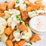 Toss cauliflower and sweet potato with olive oil, salt, and pepper then spread out in an even layer on a foil-lined baking sheet. Roast for 20-25 minutes or until browned.